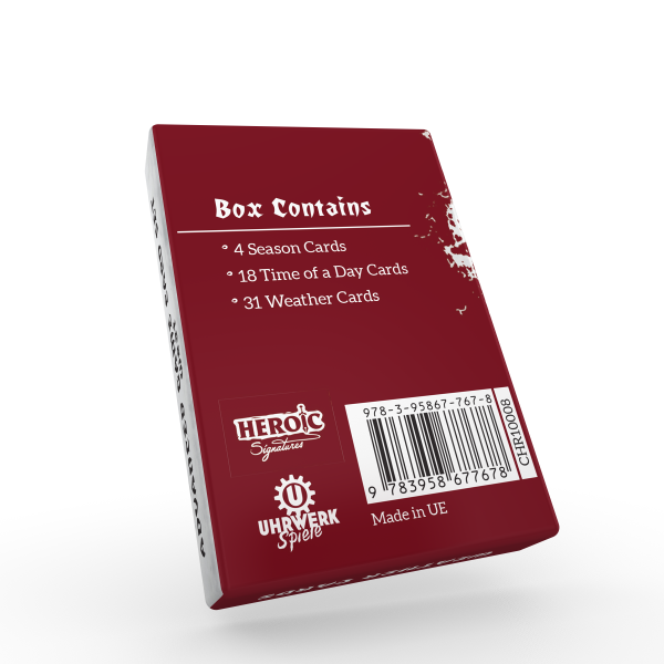 Unlike other components, the rules and effects found in this deck are not included in the main rulebook. The Weather Cards Deck is designed specifically to expand the game into a more immersive and strategic experience, adding an entirely new layer to advanced gameplay.